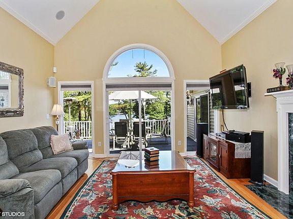 A spectacular water view is the very first thing you will notice when entering the front door. In fact this builders home boasts water views from almost every room. In addition there is wonderful attention to detail and numerous upgrades including tray ceilings, pewter stair railings, central vac, and two decks. Choice of first or second floor master bedroom. Large gourmet kitchen with granite counters and maple cabinets leads to light drenched Florida Room. Boat, water ski, fish, jet ski or swim in this large spring fed fully recreational pond. 3 acres, bocce and horse shoe areas. Irrigation. Private Beach. This White Island Pond waterfront property represents not just a beautiful home but a lifestyle.