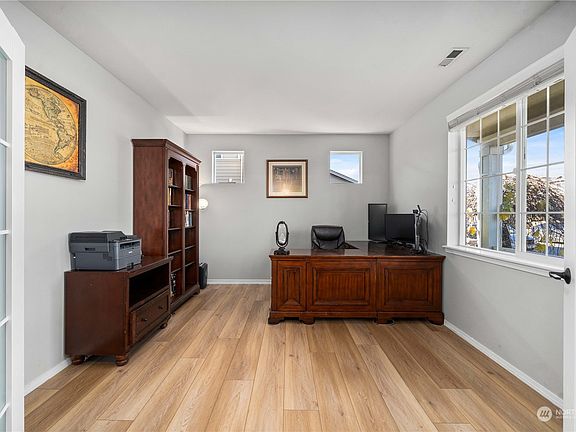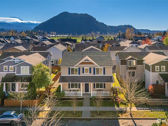 Welcome to this stunning 5-bedroom home with a large office in Elk Meadows, featuring breathtaking views of Mt. Rainier! This home boasts brand-new luxury vinyl plank flooring, fresh carpet, a new furnace and A/C unit, and an insulated garage door. The spacious kitchen is a chef's dream, equipped with stainless steel appliances and abundant counter space—perfect for entertaining. Enjoy outdoor living on the back patio with a gas hookup for your BBQ, or unwind on the cozy covered front porch. The large main bedroom includes a spacious dual walk-in closet. Ideally located near Mt. Peak, downtown, local shops, a fitness park, and 3 neighborhood parks, this home offers the perfect blend of comfort and convenience. Don’t miss out!