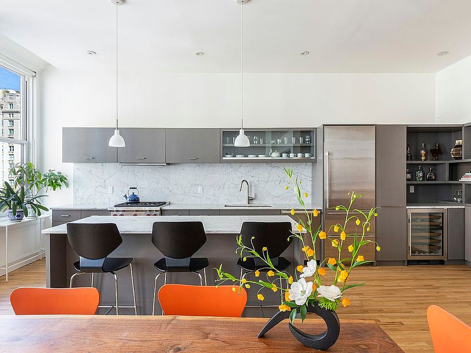 A full gut-renovation and an architect's vision transformed this nearly 1,100 square foot Tribeca space into a downtown dream home, creating a beautiful space that blends preserved original prewar details with modern refinements. You're going to love the open layout that features a large living and dining room off the kitchen, as well as an office/ library with built-in desk and bookshelves. Airy 11-foot ceilings, large north-facing light-filled windows complement the spacious open flow, adding style and comfort.