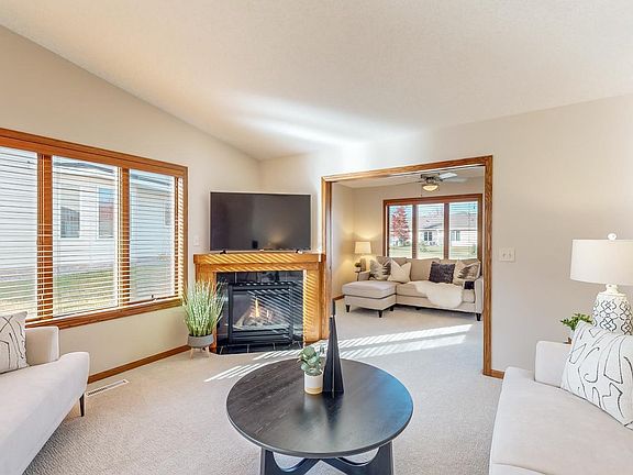 One level living at its finest! This meticulously maintained townhome has fresh paint throughout, brand new carpet, stainless steel kitchen appliances and a brand new roof! This beautiful home features two spacious bedrooms and bathrooms, vaulted living room ceilings and a bright, sunny kitchen with an abundance of cabinets for all your storage needs. Natural light fills the home as you the cozy gas fireplace and 4-season sunroom for added entertaining space. Step out back to your private patio or out front into your large garage filled with storage cabinets. This townhome is located in a quiet cul-de-sac in the heart of Byron, MN. Schedule your tour today!