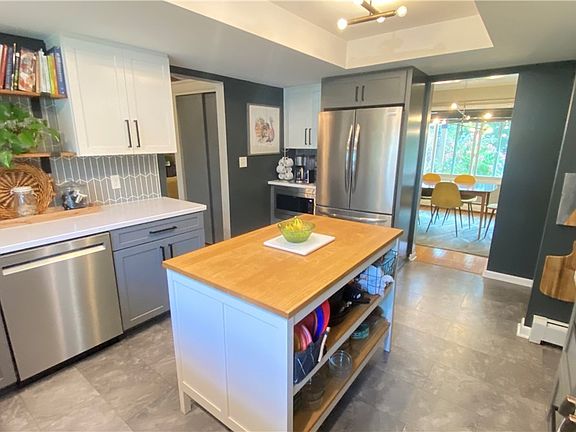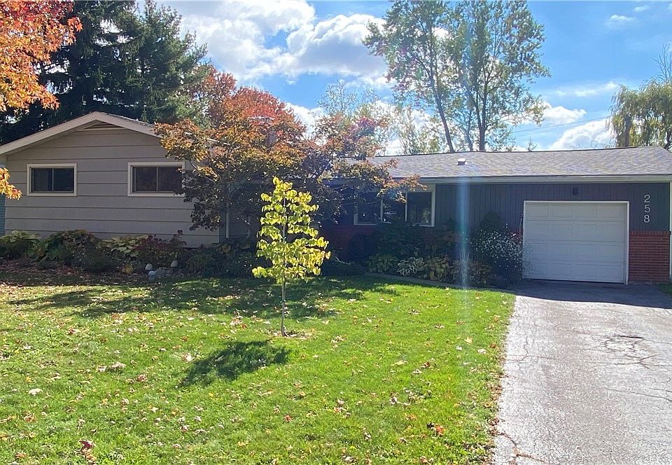 Welcome home to 258 Brookwood Drive in the beautiful Village Of Hamburg. Enter through the center entrance foyer to this 3 Bedroom 2.5 bath raised ranch that has so much to offer. Let's start in the updated fully applianced kitchen with beautiful Corian countertops with plenty of cabinets and pantry with a center island and coffee bar. Large dining room that opens to the spacious living room with natural woodwork and a cozy fireplace. Beautiful hardwood floors throughout. Master bedroom with double closets and an updated full master bath. Two additional nice size bedrooms with another updated full bath. Let's head to the finished basement with an updated half bath and fantastic woodwork with plenty of windows for natural lighting. Now for one of the best parts the mechanicals let's start with free electric for the entire house (Electric car outlet in garage). Solar panels installed in 2024 just $40 a month to be hooked up to the grid. Mini splits for A/C throughout the house. Newer roof and some updated windows and insulation and so much more. Enjoy the amazing fully fence backyard with a patio and grilling area that opens to one of the largest lots in the Village. Cozy up this fall to the firepit that is surrounded by fruit trees and perennial gardens in your private backyard. Attached garage with a built in workbench and plenty of storage. This fantastic property is waiting for you !!! Open House Saturday 11-1 P.M.- October 18th