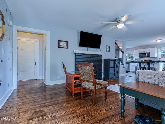 This beautifully renovated 3-bedroom, 2-bath home is a true gem, located in the highly desirable South Knoxville neighborhood. Just minutes from downtown, UT Campus, and local amenities, this home offers the perfect combination of contemporary updates and timeless character. The spacious living room features a cozy fireplace and flows effortlessly into the remodeled kitchen, complete with a sleek island—perfect for both cooking and entertaining. Refinished hardwood floors add warmth and appeal throughout, while both bathrooms have been thoughtfully updated to provide a fresh, modern touch. Step outside to the large deck, ideal for relaxing or hosting guests, and enjoy the expansive 0.66-acre backyard with a cozy fire pit perfect for relaxing under the stars. An unfinished basement offers plenty of storage and potential for future expansion, along with a 1-car garage and additional parking spaces. The quaint front fence adds to the home's curb appeal, making it a standout in the neighborhood. Additionally, ALL waterlines in home were replaced with pex 1 year ago. Don't miss out on this beauty—it's the perfect blend of comfort, convenience, and charm.
