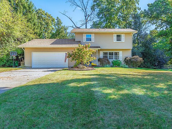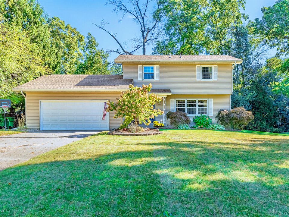 Beautiful and well-maintained 4-bedroom, 2.5-bath two-story home situated on a 0.36-acre lot in Emmett Township. The main level features a spacious living room open to the dining area and a large kitchen with hardwood flooring. A cozy family room offers a wood stove, vaulted ceiling with exposed beams, and access to the deck overlooking the landscaped backyard. The upper level includes a primary suite with a full bath, three additional bedrooms, and a second full bath. The finished basement provides a large recreation area, a flexible bonus room, and a utility room with ample storage. Additional features include an attached 2-car garage with extra storage space. Many updates have been done including: New Roof and Siding (2024), New Garage Door (2025), New Gutter cover system on 2nd floor (2024), New Refrigerator/Freezer, (2024), New Washer (2025), and complete new Well System installed (2016). Note: Seller's are buying a new construction and need possession until mid January 2026.