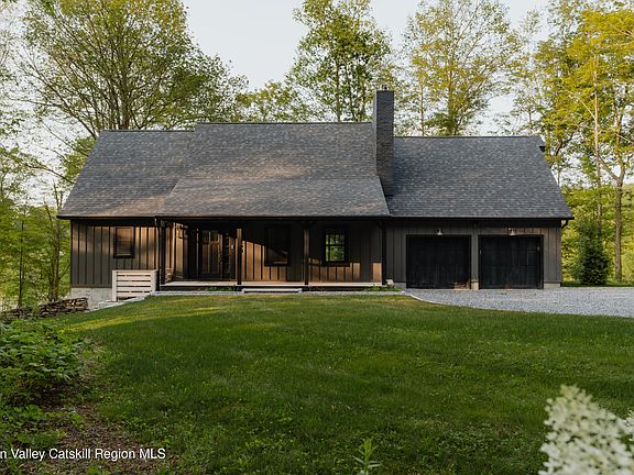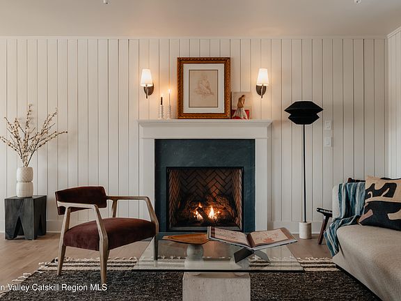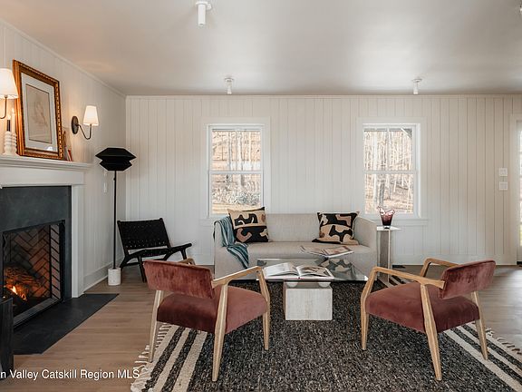 Introducing Fox Run; a turn-key designer lakefront 3 bedroom, 4 bath contemporary on over 5 acres of pristine land privately set amongst beautiful homes and established horse farms in Dutchess County. The stunning setting is centrally located under 20 minutes from the villages of Rhinebeck and Millbrook. This 3,000 sq ft home features all new mechanicals, Andersen Architectural windows, solid oak flooring, a new 50-year roof and high-end finishes throughout. Enter into the open-concept living room with gas fireplace and vertical shiplap walls flowing into the gorgeous kitchen complete with Bertazzoni gas range, Fisher Paykel cabinet fridge, Omega cabinetry and marble countertops. The bay window and dutch doors offer 180 degree views of the semi-private lake below. A laundry/mudroom, bedroom and full bath complete the first floor. Up the stairs find a generously proportioned primary bedroom with vaulted ceilings, a designer bathroom with free-standing bathtub and glass shower, both oriented toward the beautiful views below. A separate water closet completes the primary suite. Also upstairs find an additional bedroom with vaulted ceilings and a 2nd full bath, outfitted with the same custom finishes. A finished walkout basement provides a 3rd level of flexible living space, complete with a half bath and separate mechanical room featuring a Navien tankless boiler and water heater, New ducted heating and air conditioning system, artesian water filtering and all new plumbing. No detail has been overlooked. Outside, enjoy the real magic of the property. Take in the lake views from the ample cedar deck or make your way down the woodland path for swimming or canoeing. The setting is quiet, lush and tranquil. 8 minutes from the Taconic Thruway and 85 miles from NYC