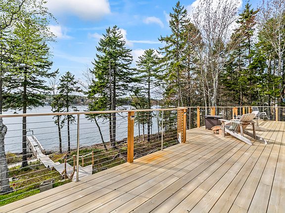 Experience the ultimate coastal lifestyle with this newly built waterfront luxury home in Harpswell, designed for those who appreciate privacy, fine craftsmanship, and life on the water. Set on a double lot with 200 feet of deep water frontage, this stunning home was expertly constructed by a respected local builder. The setting is elevated and serene, offering sweeping westerly views and unforgettable sunsets from the waterside deck and nearly every room. Thoughtfully designed for comfort and function, the home welcomes you with a beautifully crafted entry and mudroom, complete with custom bench seating, abundant storage, and a convenient half bath. The chef's kitchen is the heart of the home, featuring an oversized quartz island, high-end appliances, and there's even a dedicated coffee bar-cafe, perfect for hosting family and friends. The first-floor primary suite offers bold ocean views, a luxury spa-style bath, and all easy one-level living. Even the laundry room is a standout, featuring a sun tube skylight that floods the space with natural light. Whether you're into boating, kayaking, or simply soaking in the peace of coastal living, the private deep water dock makes it easy to get out on the water at a moment's notice. An attached two-car garage includes a large bonus room above that would be ideal for a home office, studio, or whatever you can imagine. You need to get away, if you want the best the coast has to offer, you have earned this. Move-in ready and built with enduring quality, this property offers the perfect blend of luxury and outdoor living on Maine's beautiful coast.