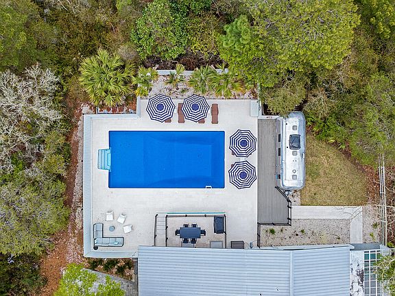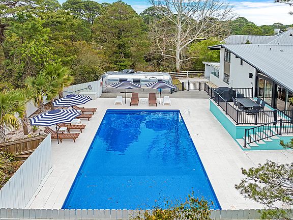 'Florida Flashback' - Built in textbook midcentury modern style in 1960, both the interior and exterior have undergone a complete transformation to embrace the original architecture with new-age design elements. Windows stretch from floor to ceiling keeping the home doused in Florida sunlight while the drool-worthy renovation boasts clean lines and pops of contemporary coastal decor. Both stylish and welcoming, the redesign of this home is flawless in execution. Encompassing 2,375 square feet, this home has five bedrooms, three and a half baths, over a half acre lot, private heated pool, over-sized one car garage, fully fenced in yard, and an Airstream as poolside decor for the ultimate retro-feel. Located in Dune Allen minutes from public beach access and the Santa Rosa Golf Club. NO HOA