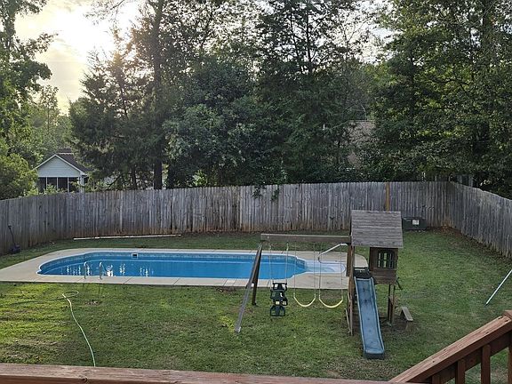 Wood burning fireplaceBeautiful inground poolGarden tubOasis in the backyardFinished walkout basementEight foot privacy fenceTreehouse inspired playground