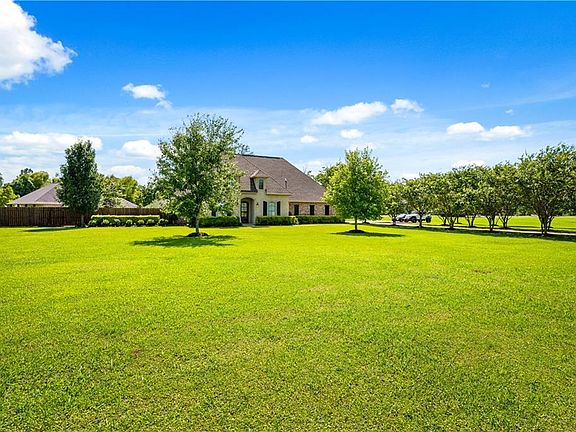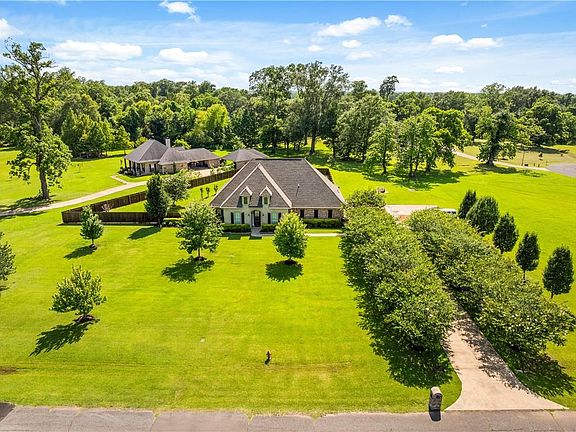 Luxury living at it's BEST!! Welcome to this beautifully landscaped 4-Bedroom, 3-Bath custom home with loffice, offering 2,375 sq ft of refined living space on 1.3 private acres in the exclusive Lambres Gin community. In addition to a large covered patio overlooking a stunning pool and manicured private backyard, this freshly painted home is rich in custom features, including 10- and 12-foot ceilings, solid hardwood and brick flooring, updated lighting and fans, and elegant custom crown molding throughout. The open-concept living area is anchored by a built-in library and showcases custom cabinetry, granite countertops, and a seamless flow for both everyday living and entertaining. Enjoy immersive sound with a premium stereo surround system indoors and out. The primary suite offers direct access to the patio and pool, a spa-like en suite with Jacuzzi tub, separate walk-in shower, dual vanities, and spacious his-and-hers closets. The second and third bedrooms are connected by a Jack & Jill bath, while the fourth bedroom provides additional versatility. A charming tree-lined driveway welcomes you with extra parking and a lush, manicured front lawn. Step into your private backyard retreat, fully privacy-fenced and lined with solar lighting. Relax or entertain by the 20x40 pool with extensive decking, fire pit, and a large covered patio outfitted with custom sun shading, two outdoor TVs, and a full cook area with sink, great for game days and gatherings! Additional highlights include a heated and cooled oversized garage, for possible workshop or hobby space. This one-of-a-kind home delivers the perfect blend of luxury, comfort, and functionality—inside and out. Schedule your private showing today!
