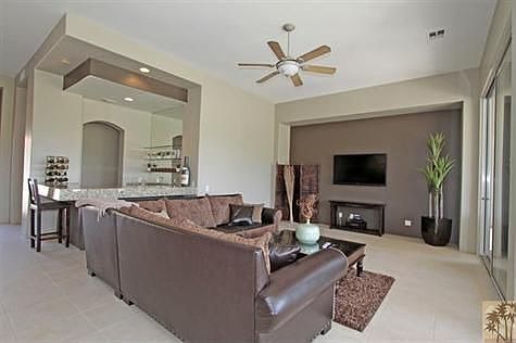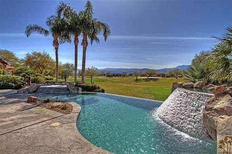 If you're looking for a fabulous home with a spectacular view in a world class destination resort community, you just found it. This 4 bedroom, 4.5 bath (including separate casita) home is one of the best in the very desirable Legacy Area of Mission Hills Country Club. The panoramic views are visible as you enter the private courtyard through a double door entry with clear glass panels. The open floor plan maximizes the beauty of the golf course and Southern mountain views. Walls of windows look out onto the patio with infinity pool, dramatic waterfall features, and of course, that view! Beautiful beveled glass French doors to the spacious master suite are just one of the very special features of this very special home. A formal dining room and living room (with a cozy dual fireplace for those cool desert nights), a large gourmet kitchen with eating area and a spectacular cook station on the patio provide great space for entertaining both inside and out. This is the best of deser