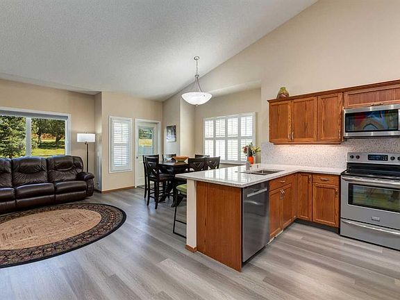 This fully developed BUNGALOW in the established Millrise neighbourhood has been UPDATED extensively over the past 5+ years, with almost 2500 square feet of developed space over two levels. There is a long list of quality interior and exterior improvements. Nicely located on a quiet CUL-DE-SAC with a pie shaped lot backing onto GREEN SPACE, the home has abundant curb appeal with a full exterior update by Lummerding Exteriors in 2022, including “heavy wall vinyl” and “class 4” hail impact roof shingles. The double attached garage is heated and finished with “Trimlight” LED lights on front & back of home. The main floor is an open concept layout with VAULTED CEILINGS in primary bedroom, foyer, living, dining, and kitchen areas, plus a skylight. Interior features include updated luxury plank vinyl flooring, custom window coverings, quartz countertops, several updated windows, chrome finish hardware, and updated light fixtures. The kitchen includes a pantry with stainless appliances and adjacent dining area plus eating bar. The exterior door off the living & dining area opens onto a HUGE DECK and backyard siding onto GREEN SPACE with walking paths. There is a large, newer window in the family room with a gas fireplace with fan. The primary bedroom offers a walk-in closet and 5-piece ensuite bath with jetted tub and separate shower. The main floor also includes a den with a glimpse of mountains, convenient half bathroom, and laundry room with newer washer & dryer and back hall closet. The lower level includes a four piece bathroom, two spacious bedrooms and recreation room, each with walk-in closets. If you are looking for a home in MOVE-IN CONDITION and QUIET LOCATION, this property is ready for new owners.