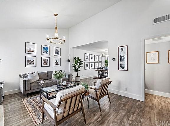Welcome home to this beautifully upgraded 3 bedroom 2.5 bath home in the Country Road community of Brea. Enter through the front door & into a light and bright living room with vaulted ceilings, cozy fireplace with quartz surround & custom hardwood mantle. Step through into the spacious formal dining room & into the newly remodeled kitchen featuring solid wood cabinets with soft-close hinges & drawers, quartz backsplash/countertops with a waterfall edge, stainless steel double sink with gooseneck faucet, & a new Dacor pro style range & LG appliances. In the downstairs powder room find a marble topped vanity & shiplap wall. Upstairs, through double doors, the spacious and serene main bedroom features vaulted ceilings & new carpet, in the en-suite bath find a soaking tub, & large custom dual closet system. Two light & bright secondary bedrooms, a remodeled bathroom with a marble topped vanity, shiplap & new Brizio shower system complete the upstairs. Outside, the nicely appointed patio is perfect for entertaining with a custom BBQ grilling area & planter boxes. An attached two-car garage, whole-house water filtration, ring doorbells, designer paint & lighting throughout, solid hardwood doors/new hardware are just some of the features you shouldn't miss. The community of Country Road is located in the award winning Brea-Olinda school district & features a clubhouse, & 2 pools/spas. Conveniently located close to freeways, shopping, restaurants. This is one you dont want to miss!