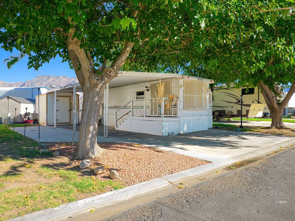 Own the Land. Own the Home. Skip the Bank.: Here's your quiet spot in the AZ Strip where you own your home and the land it sits on. That means no park rent and no guessing what's yours. It isn't fancy - and that's the beauty of it. It's solid, comfortable and ready for someone who wants their own slice of sunshine with a slower pace. Unlike many of the lots in this subdivision, there's plenty of room for parking, two large shade trees overhead, plenty of green space and shared spaces nearby with fire pits etc, a she-shed + another shed that could be storage, a workshop (if that's your thing) or whatever else your heart desires. Yes, there's an HOA, but it's simple and keeps the neighborhood tidy. The area is peaceful and the views don't hurt, either. If you've been looking for a place where you can make friends, stay warm in the winter, take off in your side by side, hike, bike or do absolutely NOTHING but relax - without breaking the bank or dealing with city noise - this is it.