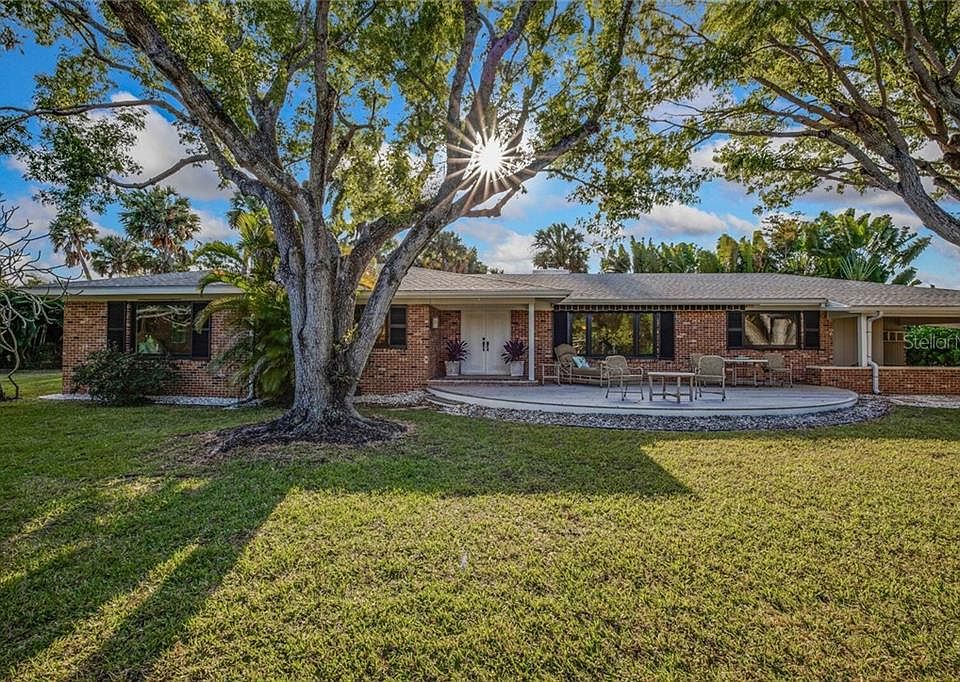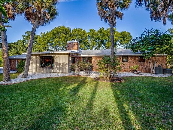 This property gracefully sits on a half-acre amidst mature trees on the banks of Lake Cutlass that borders a State Preserve. Serenity surrounds you in this remodeled lakefront 3 bedroom, 3 bath, 3,000+ sq. ft. home located on a cul-de-sac at the end of a quiet street. Built in 1961, remodeled in 2015, a host of features are found from the open floor plan with new wide plank oak wood engineered flooring, vaulted ceilings, gas fireplace, separate dining room, and a light filled Florida room with terrazzo floors. The new kitchen features plenty of workspace, with quartz counters and sold wood cabinetry. An oversized master suite offers a sitting room overlooking the lake and accompanied by a large master bath with his/her vanities. Updates include, impact glass windows, new plumbing, electrical, foam insulated attic, new laundry room and Ipe deck with an automatic awning. The outdoor deck creates added ambience and provides a retreat atmosphere overlooking the lake. One block to the beach and a short bike ride to the village. 1+ car carport.