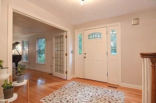 Classic Colonial set back on Pond Street, one of Hopkintons most scenic country roads w/Lake Whitehall access for fishing, kayaking & trails within minutes. Close proximity to Rts. 495, MA Pike & T, restaurants, supermarket plus TOP rated schools! Entry foyer shows off hardwood floors featured throughout both levels! (Carpet in family room & master bd) Eat in kitchen w/updates including stunning granite countertops, stainless appliances, Gas cooking. Skylit family room has cozy fireplace. Spectacular lighting,beautiful moulding dress your dining room. Formal living room behind beveled glass French doors. Half bath,laundry. Upstairs- 4 bedrooms all w/ample closet space, including the master, a large en-suite that includes romantic fireplace. Master bath has jetted tub & stall shower. Updated family bath services other bedrooms. Stay cool w/Central A/C. Great deck & yard. Large walkout basement, terrific storage & unlimited future potential.