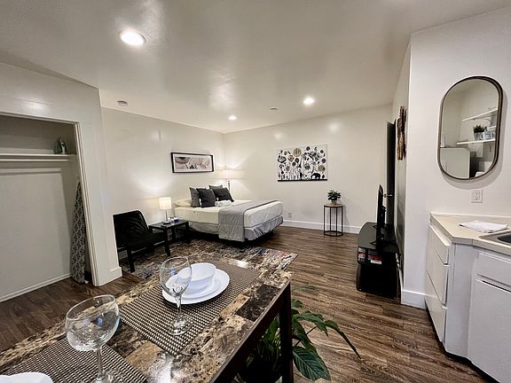 All of our units have AC/heater window unit or mini split, full bathroom with shower, and kitchen area with sink, fridge, stove and microwave. Our furnished units include bedding, sitting area, TV with cable channels and cookware. All of our units are small, clean, quiet, and nicely appointed.