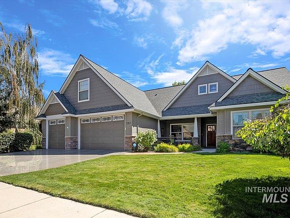 Discover comfort, character, and space in this well-maintained home in the sought-after Pinewood Lakes community of Star. Designed with a split-bedroom layout, it features 3 bedrooms, 3 full bathrooms, a dedicated office (can be nursery), and an upstairs bonus/theater room with private bath, projector, electronics, and 102" retractable screen. Solid alder doors, rich wood trim, and Mastercraft alder cabinets with pull-out shelving bring warmth and charm throughout. The large great room offers built-ins, a gas fireplace, and open views of the common area—no rear neighbors. Enjoy morning coffee on the west-facing front porch and shaded evenings on the east-facing back patio. A brand new roof in 2024 and a well-kept exterior ensure peace of mind and long-lasting curb appeal. Residents enjoy a community pool, park, walking paths, and optional gated RV storage. Just minutes from schools, shopping, and downtown Star, this home offers a rare blend of quality, comfort, and convenience.
