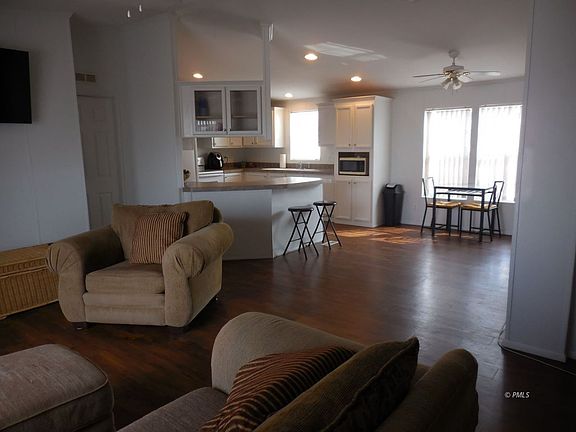 Located in the beautiful community of GH this 1,404 SF 3BR 2 bath well maintained 2004 Fleetwood home is waiting for you. Enter through the beautiful no maintenance screened 12'x20' TEXT covered deck to front door and step into a bright open foyer, LR w/pellet stove, DR & kitchen. Large open kitchen has bright white wood cabinets, plenty of storage, walk in pantry, refrigerator, stove, breakfast bar and plumbed for dishwasher. Off kitchen is laundry room (washer/dryer included) w/shelves & access to hall bathroom. Master BR/bath is situated at one end for privacy w/other 2 bedrooms at opposite end & access to hall bath. In large master bath is a Safe Step Walk In Jetted Tub & Shower, 2nd closet & lots of storage. In 2017 the home had new flooring installed, window coverings throughout and completely refreshed interior. Also has dual pane windows, 50 gal electric hot water heater. Low maintenance desert landscaping in yards, RV parking & storage shed. House is set on cement slab & FHA approvable. CCR's in place & HOA dues are $470.28 annually. Call us for an appointment to see this great home, it won't last long!