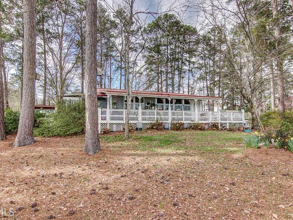 LEVEL LOT!! EXPANSIVE VIEW!! APPROXIMATELY 400 FT OF WATER FRONT AND SEA WALL!! Three Bedrooms. Two Baths. Open Kitchen Dining and Great Room. Sun Room Overlooking the Lake. Covered Porch and Open Deck Lakeside. Tussahaw Section of Lake. Has Mature Fruit Trees, Blueberry Bushes and Flowers. Covered Dock with Lift and Swim Platform Plus A Deck Over the Lake Plus a Boat Ramp Area. ALL THIS AND PRICED UNDER $300,000.00!!!