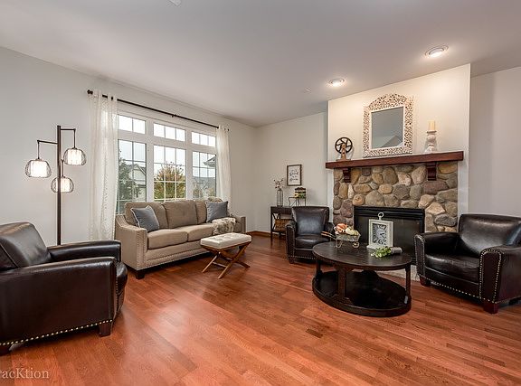 A hidden gem in Easton Park! Rare Burbury model is virtually soundproof with 8" cinderblock between units (some homes in the subdivision only have drywall separating the neighbors). Sharp home with 9' ceilings on the main floor, hardwood floors, and NEW neutral carpeting. Freshly painted interior with cozy stone Heatilator fireplace in the living/dining area. Large kitchen with granite countertops and stainless steel appliances. Kitchen features an island workspace with additional cabinet storage. Light and bright eat-in area with walk out to private deck. Large walk-in closet in master bedroom. Loft can be converted to third bedroom. Versatile lower level space can be used as a family room, home office, or additional sleeping quarters. Attached two car garage. Several nearby trails and parks. Association amenities include walking paths, benches, gazebos, and a pond. Conveniently located near train stations and major highways. Don't wait to make this home your own!
