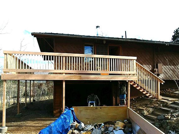 Completely remodeled. Large open floor plan. Large living room with lots of windows, dining, and large kitchen with loads of cabinets. New stainless appliances. New engineered laminate flooring and carpet. Updated bathroom. New outside stain and a brand new deck. Unfinished basement ready to add instant equity. Flat with circular driveway. Lots of aspens and views. Deck to be stained when weather permits.