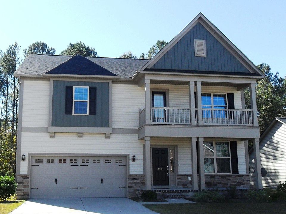 This home features a double front porch with access to the upper level through the 2nd floor loft. Inside the home, a spacious formal dining room with coffered ceiling, judges paneling and crown molding throughout make a statement! The kitchen includes a large center island with granite countertops, enhanced cabinetry, SS appliances, music port with 2 speakers, organizational space, and pantry! Hardwood flooring on main level, tile in laundry room, master bath and secondary bath. Master bedroom includes tray ceiling, his and hers closets, master bath with comfort height double vanity, and separate tub and shower. Built-in carbon monoxide detectors, architectural shingles, gutters, and garage door opener with 2 remotes