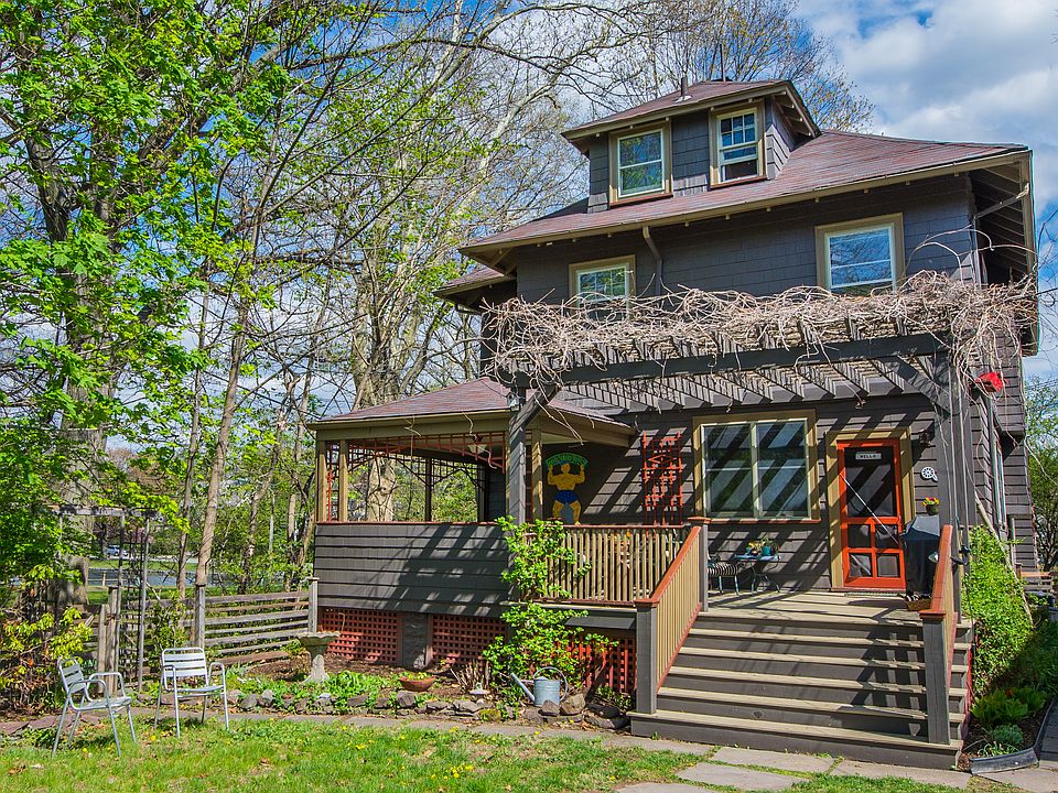 Country living in middle of Montclair. Updated 1905 American Four Square w/6 Bedrooms & 2 full 1 half baths. One-of-a-kind home with Crasftsman like details, boarding historic Edgemont Memorial Park. Old meets new with charming wisteria-covered wrap-around back porch. Featuring lovely built-ins along with a modern center island kitchen. Wood-burning fireplace in dining room. A first floor laundry room and spacious storage space in the full basement. The two-car garage has been transformed into a stunning artist's studio, but can easily be converted back. Close to both NYC train and bus transportation, shopping and dining areas. Experience bucolic sunset views of the Pond right out your windows. A home with character, perfect for entertaining.