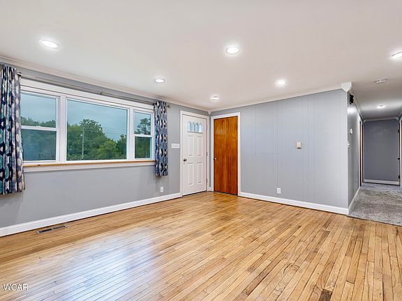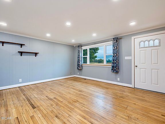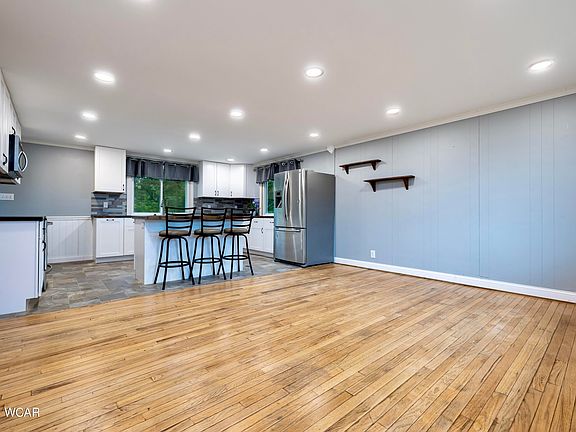 Brick ranch on 1.71 acres with a private setting close to town! This home features many updates throughout and has lots of natural light. Home consists of 3 bedrooms, 2 full baths, living room, kitchen with dining space, and finished walk-out basement (635sqft included in the total sqft of 1675). The basement features a family room, full bathroom (a zero-entry shower with 36 inch door), laundry area and a den/office or possible 4th bedroom with a decorative fireplace. Geothermal heating/cooling new in 2019. Electrical and kitchen updates in 2023. Downstairs bathroom updates in 2024. Enjoy the wrap-around deck overlooking the tree-lined back yard with a creek, lots of wildlife, three apple trees, one pear tree, an oversized 2-car detached garage (30x30'), livestock shed great for 4-H projects and a firepit area. Call today for your appointment to see this home!