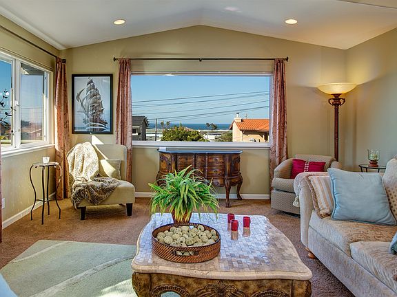 Rock and Ocean views, still like new! Meticulously maintained 2007 Built 3 bedroom, 3 bath with excellent finishes! Sold with all furnishings & decor, now that's turnkey! Licensed Vacation Rental or just a low maintenance vacation home! Two wonderful view decks, an open & vaulted kitchen & living room with fireplace. The kitchen has high breakfast bar with gorgeous granite throughout and quality appliances! The Master is spacious, jetted tub, walkin closet, etc. Laundry room off kitchen, Two bedrooms and full bath downstairs. Not too many in this condition become available in Morro Bay!