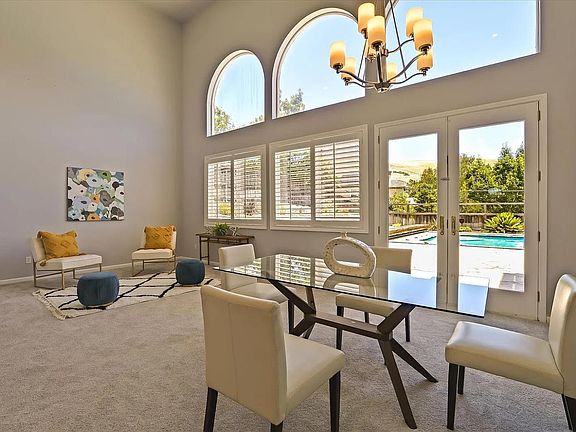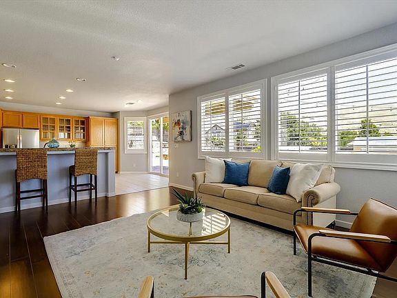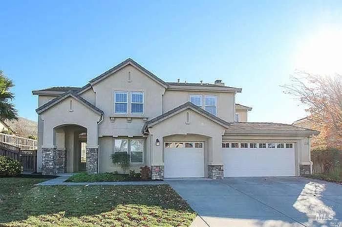 Move right in to this beautifully appointed 3,084 sq ft two-story residence located in the prestigious Hiddenbrooke Golf Community on Marshfield Road in Vallejo. This 4-bedroom, 2.5-bath home offers a thoughtfully designed open-concept floor plan with a blend of hardwood and carpet flooring, custom window coverings, and roof-mounted solar designed to help reduce energy costs. The expansive kitchen features tiled flooring, granite countertops, and abundant cabinetry and counter space, seamlessly opening to a spacious family room filled with natural light. This layout is ideal for both everyday living and entertaining. Upstairs, the primary suite offers a private retreat complete with a fireplace, balcony, walk-in closet, and an en-suite bath featuring double vanities. Two additional bedrooms are located on the second floor, while a fourth room on the main level is currently configured as a home office, providing flexible use options. The private backyard is designed for relaxation and entertainment, showcasing a beautiful in-ground pool and swim spa with an electric pool cover system. A large BBQ island overlooks scenic hillside views, creating an exceptional outdoor living experience. Located within the desirable Hiddenbrooke community, this home combines space, functionality, and resort-style amenities in a highly sought-after setting.