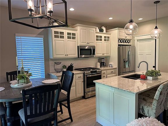 Gas fireplaceQuartz countertopSprinkler systemFenced-in backyardSliding doorsTray ceilingUnder-cabinet lighting