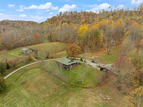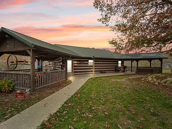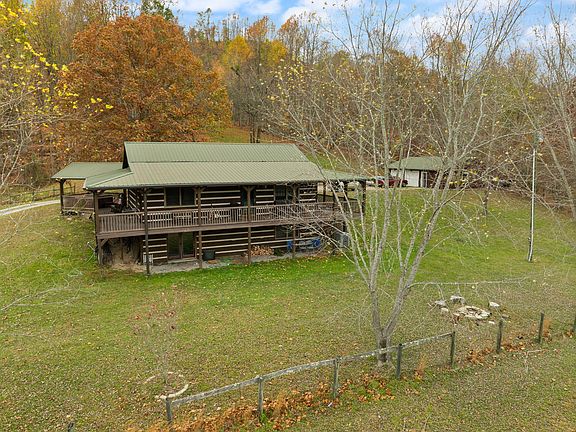 Discover your dream home in this rustic log cabin, nestled on 53.10 acres of prime land ideal for nature lovers, hunters, and outdoor enthusiasts. This beautiful cabin boasts a fully finished walkout basement and a wraparound porch with a hot tub, creating an inviting space for relaxation.