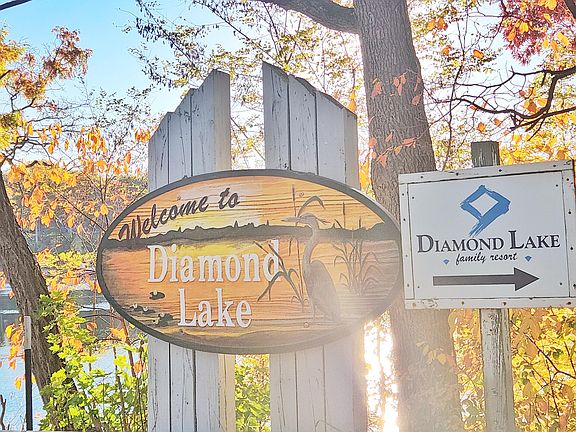 This cozy 2 Bed 1 bath home with a fantastic view is just feet away from diamond lake. It has all the amenities to be a year round home and the location to be a great cottage. Walking distance to the boat ramp, and park. Garage needs walls & flooring, home needs to be finished in areas. Kitchen cupboards are taken off for ease of painting.