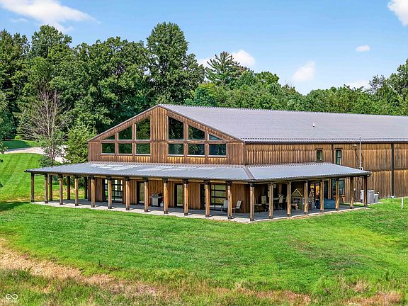You will not find another BARNDOMINIUM in Southern Indiana like this... PLUS seller is open to TRADE! This one-of-a-kind find offers over 10,000 sq. ft. with an exquisite FOUR bedroom, 2.5 bathroom situated on 77.71 acres, offering the perfect balance of modern engineering, energy efficiency, and outdoor adventure. Built on a 6-inch concrete slab with steel beam construction and spray foam insulation (R-35+ rating), this home was designed for strength, comfort, and longevity. Inside, you'll find an open-concept great room featuring exposed steel beams for architectural detail, a rare oversized fireplace insert, and a dramatic industrial ceiling fan as the centerpiece. The kitchen and dining area flow seamlessly offering a great gathering space with garage doors and windows to create additional space connected to the covered outdoor area. Down the hall, you will find the primary suite including a breathtaking shower offering cedar-lined floor, elegant tile work, and custom glasswork along with a spacious walk-in closet. In addition, you will love the dedicated office space, half bathroom, and well designed laundry room/mudroom area on the main level. Upstairs, you'll find another spacious living space with stunning views out your upper level windows, additional bedrooms, another bathroom, plus expansive attic storage the size of the rooms below. Additional highlights of this home is having over 6,000 sq. ft. dedicated to the hobby enthusiast. Whether you want to build cars, rock crawlers, guns or just a great hangout spot this is efficiently setup and ready. Commercial-grade garage doors throughout home. This space is climate controlled like the rest of the home as well as has plumbing throughout. Heating and efficiency are unmatched with radiant floor heat powered by either (or both) a wood boiler and propane boiler, dual high-efficiency propane HVAC systems, and a hot water system that runs three different ways.