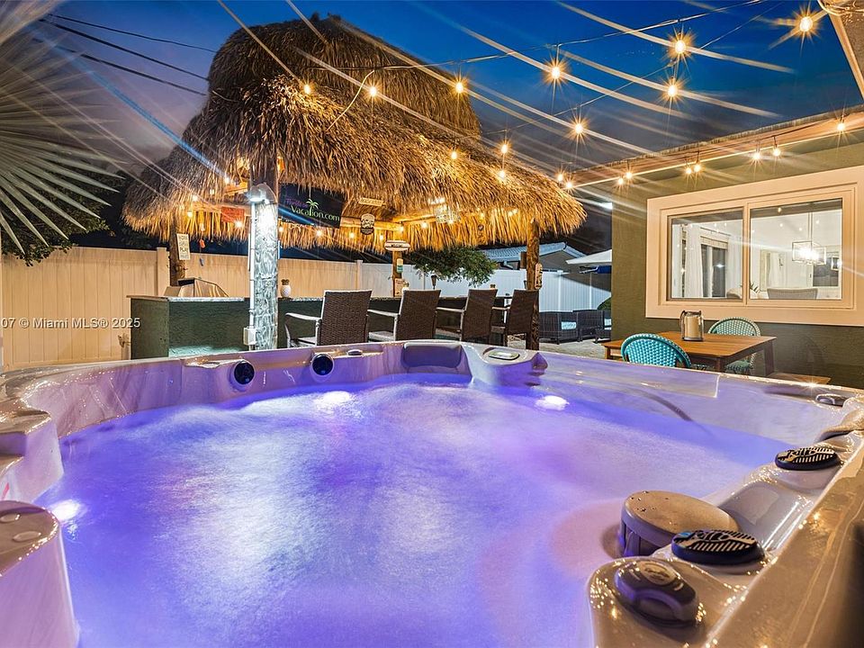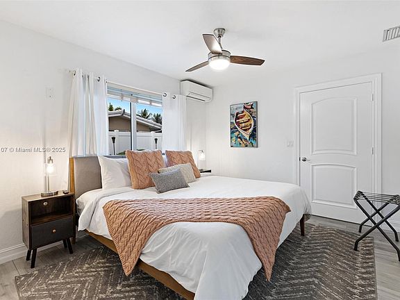 Prime location in Pompano Beach Estates—just a short walk to the beach! This charming 3BR/2.5BA home is loaded with upgrades, including a large office off the master suite, custom closets and shelving, like-new laminate wood flooring, solid wood interior doors, stainless steel appliances, and a 3” granite countertop. Features include a custom entertainment center, laundry center off the kitchen, garage, and newer whole-house PVC plumbing. Impact windows and doors provide peace of mind. Outdoor living shines with tropical landscaping, paver circular driveway, fenced yard with like-new artificial turf, a Tiki Hut with granite bar, plumbing, electric, refrigerator, stove, and Alfresco grill, plus a high-end vista landscape lighting system. Barrel tile roof approx. 16 years old.