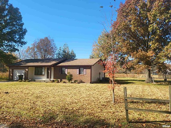 Out but not far out, you will find this ranch home on just over a half acre lot between Eldorado and Harrisburg. The contemporary ranch floor plan features 3 bedrooms and 2 full baths. The living room has a bay window, and the current family room with sliding glass door to the patio, could be used as a dining room if the new owner desires. The semi open floor plan allows for interaction between the living, family and eat-in kitchen areas. The mudroom entrance off the one car garage gives quick access to the kitchen, and the full bath with 4 foot shower which is just beyond the laundry appliances behind the bifold doors. The kitchen has ample cabinetry, room for a breakfast table, and some chairs at the peninsula. Down the hallway you will find 3 bedrooms, a linen closet and a full shared bath. Step outside and notice the large level yard is perfect for gardening, or recreation and affords a countryside view. There is a dog pen at the edge of the property.
