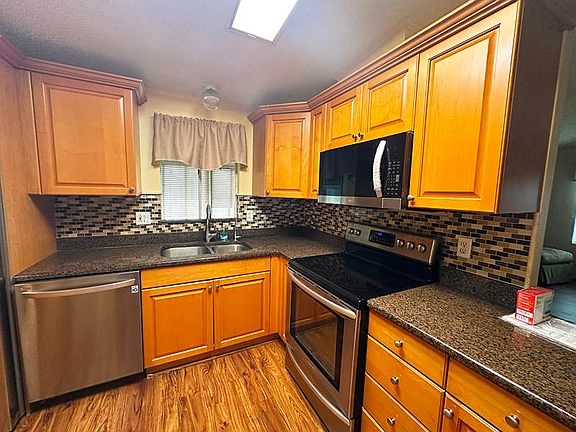 Granite countertopsSpacious patio areaSolid wood cabinetsVinyl flooringPlenty of cabinet spaceModern appliancesExtended carport