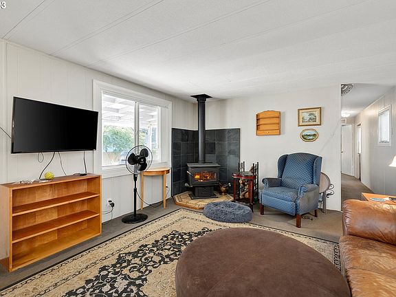 Check out this cozy home nestled in a rural, private, and quiet park. Home includes 2 bed, 2 bath & 960sqft of living space. Home has been recently remodeled to include: new rubber roof, new wood stove, new white vinyl windows, double insulation in ceilings, new water heater, new back deck, new 3/4 inch real oak hardwood flooring in master bath and closet, new exterior paint, & more. Outside you can enjoy a large fully fenced back yard, 2 storage sheds, huge covered deck, 2 car driveway, fire pit, fig trees & more. All appliances included. Space rent is $805/month. Includes; water, sewer, and garbage. RV parking & storage area also offered by park at extra monthly cost.