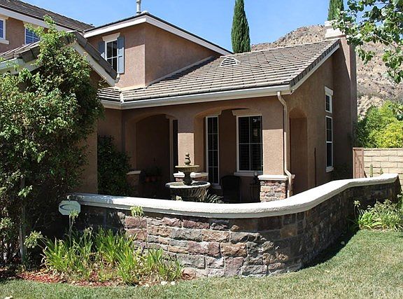 HIGHLY UPGRADED SOUTHERN OAKS BEAUTY WITH 4 BEDROOMS AND LOFT!!! Terrific entertainers yard with oversized 4 ?? foot deep spool and waterfall, 3 river stone hardscape, awesome barbecue cooking station and firepit. Great views from exceptional deck off master down Pico Canyon. Nice privacy with oversized trees and lush landscape. Great pride of ownership. Inside is model sharp with wood floors, shutters throughout, granite kitchen with upgraded tile backsplash, family room built-in. Crown molding and cased in windows, upgraded tile in master. All very warm and neutral. 3 car garage with cabinets. Good sized floorplan is 3 plus loft upstairs, bedroom and bathroom downstairs, currently used as office.