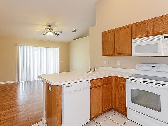 Gorgeous 3 bedroom, 2 bathroom home with an open floor plan in Land O Lakes, FL! You will love the vaulted ceilings and wood floors throughout! The eat-in kitchen includes a breakfast bar, a pantry and a dining area. The master bedroom includes a walk-in closet and a private bath with dual sinks. The screened patio in the backyard is ideal for entertaining guests! Located in the Grand Oaks community, which offers a pool, clubhouse, park, playground, tennis courts, a sand volleyball court and a basketball court. Schedule your tour today.