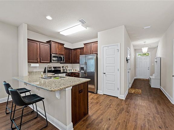 Highly sought after end unit which provides additional privacy and windows in the living room which put natural light into the main living area. This large 3 bedroom 2 and a half bath townhome has been very well cared for and has some great features. It comes with Luxury Vinyl Plank flooring downstairs in the main living area and a well-appointed kitchen. The kitchen comes with stainless appliances to include Refrigerator, Stove, Dishwasher, Micro-hood and disposal. It has a solid surface countertop with a bar facing the living room. It also has a pantry and loads of countertop and cabinet space. Downstairs is a large living space a 1/2 bath and an outdoor patio area. Upstairs are the 3 bedrooms and 2 baths. The primary bedroom has ample closet space and an attached primary bathroom while the additional two bedrooms are well sized have good closet space and share a bath. The complex is gated and has a pool and clubhouse and workout facility; its centrally located to everything in Daphne Al close to I-10 interstate, Restaurants, just a mile from the YMCA, and central to all Baldwin County has to offer.
