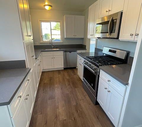 3 bedroom 1 bath - Remodeled Home in excellent La Verne neighborhood. The home features a fully remodeled kitchen with new kitchen cabinets, new quartz countertops, new microwave new dishwasher, and a new stove. New laminate flooring and interior paint throughout. Excellent school district. Remodeled bathroom. There is a large family and dining room area. Washer/dryer hook-ups are also inside the home The home also has central HVAC. Backyard area with storage shed. The garage is not included however; there is driveway parking for two cars. Renter is responsible for all the utilities. The owner pays the gardener.