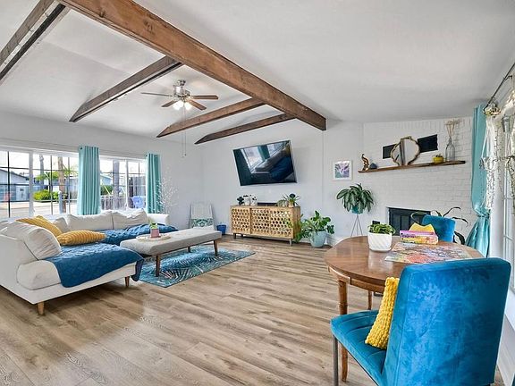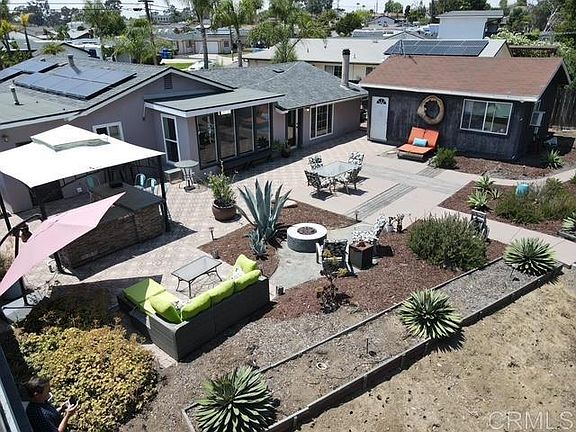 Canyon Rim Home in Coveted Birdland – Oversized Lot + ADU! This gem sits on a quiet tree-lined street on a massive 10,000 sqft lot—more than twice the neighborhood average! Featuring 3 beds, 2 baths, and a converted detached garage ADU (used as a 4th bedroom), this home offers flexibility, views, and privacy. You'll love its open floor plan with new wood laminate flooring, dual-pane windows, a newer roof, and leased solar panels for monthly energy savings. Relax or entertain in the private large backyard with its bar and BBQ, fire pit and fireworks courtesy of nearby Snapdragon Stadium. Located in the heart of San Diego, you're just minutes from downtown, the airport, beaches, and the brand-new Snapdragon Stadium. Enjoy quick freeway access to I-805, I-8, and Highway 163, making it easy to reach Mission Valley shopping, Balboa Park, UCSD Medical Center, and more in just minutes.