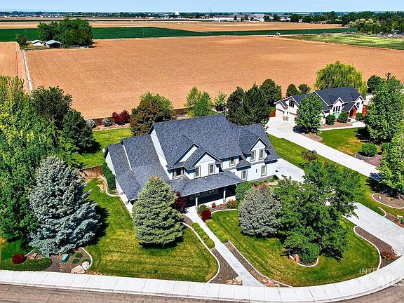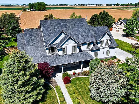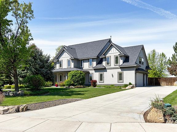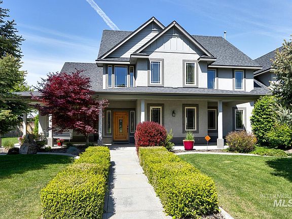 One of a kind! Over HALF AN ACRE in North Meridian! Looking for the potential to add a shop or pool? You found it! Wrap around porch and fresh exterior paint welcome you to this spacious home located directly across from Seasons Park! HUGE 18x18 Main level primary suite with walk-in closet, dual vanities, soaker tub and walk-in tile shower. Open concept living space with cathedral ceiling and gas fireplace with new file surround. Kitchen complete with new quartz countertops, gas cooktop, pantry, full tile backsplash and 2 dining spaces! Large back pergola, perfect for summer entertaining. Amazing proximity to all the amenities in Meridian, yet tucked away- don't miss this one!