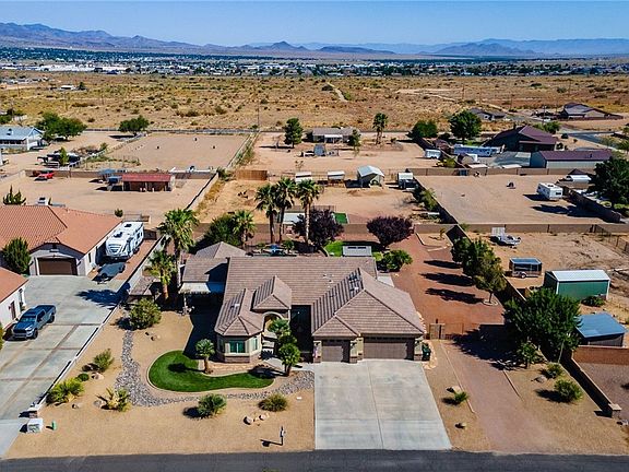 Due to NO FAULT OF ITS OWN this property is back on the market! A true Kingman GEM! This exceptional 2003 custom-built residence combines elegance, functionality, and fun. With 3 spacious bedrooms, 3 bathrooms, and 2 versatile living areas, this home is perfect for comfortable living and entertaining. Recently upgraded kitchen cabinets and countertops. The office could easily be converted into a 4th bedroom to suit your needs. Large 3-car boat deep garage offers ample storage and parking. This property boasts a meticulously maintained front yard and a gorgeous resort style backyard, a private oasis with a sparkling pool, built-in kitchen, gazebo, and firepit ideal for relaxation and gatherings. The back of property has even more to offer, a basketball court, a BMX pump track, horse stalls and an additional garage for storage. Multiple patios provide seamless indoor-outdoor living, perfect for entertaining or unwinding in your own retreat. This home offers a rare blend of luxury and practicality. Don t miss your chance to own this unique property! Buyers will also get a 2+ year transferable home warranty.