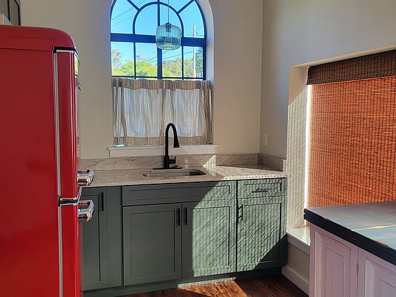 New patioOff-street parking spotLarge arched windowsHigh ceilingsBeautiful bathroomModern kitchen