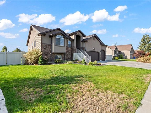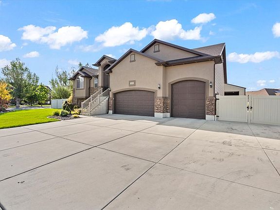 HUGE price adjustment! Spacious and inviting, this well maintained four-bedroom three full bath home offers the perfect blend of comfort and style! Open concept living with plenty of light! Beautiful kitchen with stainless steel appliances. Step out onto your covered deck and enjoy relaxing while listening to your favorite music coming from the sound system on deck and downstairs! Open patio gives you all the room you need for entertaining! Check out the 24x32ft detached garage with 220 volt power! Plenty of room to park all the toys! Three car attached garage has your rv hook up inside! Wired for a hot tub! Out of the busy but close enough to schools, shopping and I-15 on ramp for convenience!