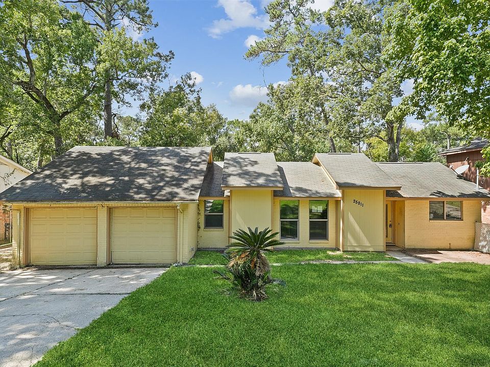 Located in the established Timber Lakes subdivision, this updated 2-bedroom, 2-bath home combines practical living with a convenient location just minutes from The Woodlands. Set on a large lot with mature trees, the property features an open living area with a brick fireplace, a functional kitchen with generous cabinet space, and a bright breakfast nook. The primary suite includes a private bathroom, while the secondary bedroom is ideal for guests, a home office, or other flexible use. The backyard offers a covered patio and plenty of space for outdoor activities. No HOA and a low tax rate. Quick access to I-45, shopping, dining, and top-rated Conroe ISD schools.