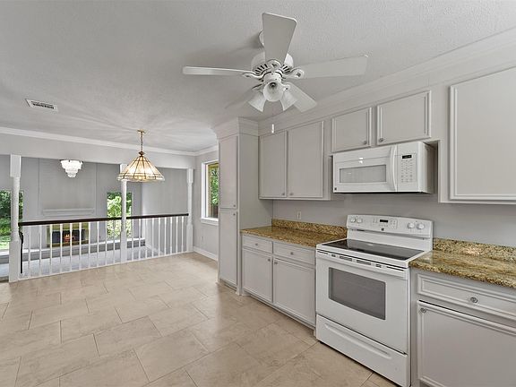 Brick fireplaceBright breakfast nookFunctional kitchenMature treesGenerous cabinet spaceSecondary bedroom