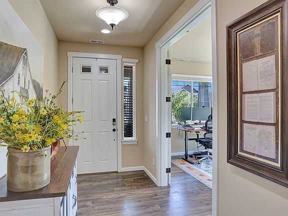 This stunning corner lot home exudes pride of ownership, featuring 4 bedrooms, a home office, and a bonus room. Relax in the inviting great room with its open staircase and cozy fireplace. The spacious kitchen, perfect for entertaining, boasts an expansive island, walk-in pantry, and ample cabinet space. The large dining room overlooks the beautifully landscaped backyard. Upstairs, the primary suite offers a luxurious 5-piece bathroom and an oversized walk-in closet with built-ins. Additionally, there's a sizable bonus room, three generous bedrooms, a secondary bathroom, and a convenient laundry room. Enjoy the nearby community park and trails, while benefiting from easy access to restaurants, shopping, and major highways.