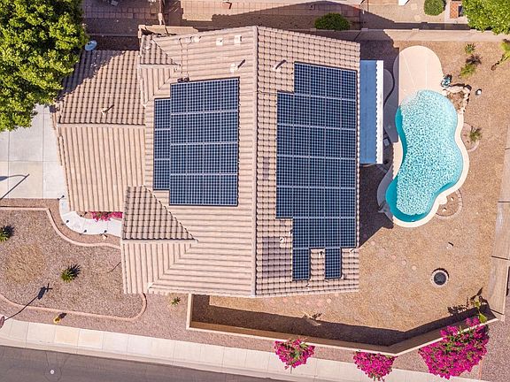 This meticulously maintained home is ready for its next owners! This home is outfitted with a 14.5 KW OWNED SOLAR PANEL SYSTEM. Save on your electric bill. Past electric bills available for your review. Upon entering the home you are greeted by an open floor plan with 18'' tile. To the left is a formal dining area with entry to the kitchen and a living area is to the right. Just ahead is an enclosed office (could be used as a 5th bedroom if needed). Also ahead is entry to the kitchen & great room which overlooks the pool. The kitchen is nicely updated with Quartz counter tops, tile back splash, espresso cabinets, walk in pantry & stainless steel appliances.